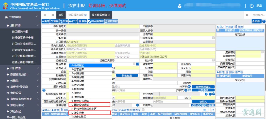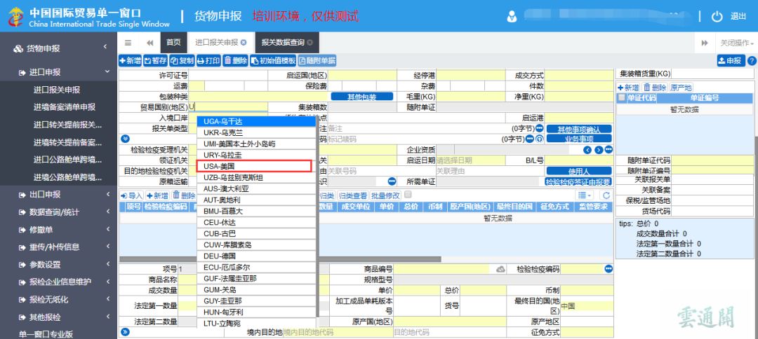 變化一:申報要求(變化及新增) 境內收/發貨人代碼 該項目為必填項,原海關與原報檢項目的“收發貨人”,現改名為 “境內收發貨人”。編碼填報18位法人和其他組織統一社會信用代碼,沒有統一社會信用代碼的,填報其在海關的備案編碼。進口填“境內收貨人”,出口填“境內發貨人”。 境外收/發貨人代碼 該項目為選填項,境外收貨人通常指簽訂并執行出口貿易合同中的買方或合同指定的收貨人,境外發貨人通常指簽訂并執行進口貿易合同中的賣方。對于AEO互認國家(地區)企業的,編碼填報AEO編碼,特殊情況下無境外收發貨人的,填報“NO”。 境外收發貨人名稱(外文) 該申報項目為必填項。該項目數據類型為字符型,最多支持錄入100位。該項目為原報檢項目的“收發貨人(外文)”,錄入要求無變化。該項目為原報檢項目的“收發貨人(外文)”,錄入要求無變化 消費使用/生產銷售單位代碼 該申報項目為必填項。該項目數據類型為18位字符型。填報18位法人和其他組織統一社會信用代碼,無18位統一社會信用代碼的,填報“NO”。進口填報消費使用單位,出口填報生產銷售單位。 包裝種類 該申報項目為必填項。該項目數據類型為2位字符型。按照海關規定的《包裝種類代碼表》選擇填報進出口貨物的所有包裝材料,包括運輸包裝和其他包裝。 運輸包裝即提運單所列貨物件數單位對應的包裝,按照海關規定的《包裝種類代碼表》,填報運輸包裝對應的2位包裝種類代碼。例如:使用再生木托作為運輸包裝的,在本欄填報中文“再生木托”或代碼“92”。 若還有其他包裝,包括貨物的各類包裝、植物性鋪墊材料等,則在“其它包裝”欄目的“包裝材料種類”中,按照海關規定的《包裝種類代碼表》填報2位包裝種類代碼,在“包裝件數”欄目中填報對應件數數字。例如:其它包裝中含有紙制或纖維板制盒(箱)包裝的,在本欄填報中文“紙制或纖維板制盒(箱)”或代碼“22”。 標記嘜碼 該申報項目為選填項。該項目數據類型為字符型,最多支持錄入400位。 備注 該申報項目為選填項。該項目數據類型為字符型,最多支持錄入400位。 貨物存放地點 該申報項目為條件必填項。該項目數據類型為字符型,最多支持錄入100位。填報貨物進境后存放的場所或地點,包括海關監管作業場所、分撥倉庫、定點加工廠、隔離檢疫場、企業自有倉庫等。 檢驗檢疫受理機關 該申報項目為必填項。該項目數據類型為6位字符型。填報提交報關單和隨附單據的檢驗檢疫機關。該項目為原報檢項目的“報檢機關”,錄入要求無變化。 領證機關 該申報項目為必填項。該項目數據類型為6位字符型。填報領取證單的檢驗檢疫機關。該項目為原報關項目的“領證地”,錄入要求無變化。 B/L號 該申報項目為有條件選填項。該項目數據類型為字符型,最多支持錄入20位。填報入境貨物的提貨單或出庫單號碼。當運輸方式為“航空運輸”時無需填寫。 集裝箱商品項號關系 該申報項目為必填項。該項目數據類型為字符型,最多支持錄入255位。當使用集裝箱裝載貨物時,需填報集裝箱體信息。集裝箱商品項號關系信息填報單個集裝箱對應的商品項號,半角逗號分隔。例如:“APJU4116601”箱號的集裝箱中裝載了項號為1、3和5的商品時,應在“商品項號關系”錄入“1,3,5”。 集裝箱貨重 該申報項目為必填項。該項目數據類型為數字型,最多支持錄入19位,19位中小數點后最多錄入5位。當使用集裝箱裝載貨物時,需填報集裝箱體信息,集裝箱貨重錄入集裝箱箱體自重(千克)+裝載貨物重量(千克)。例如:集裝箱重量和箱內裝載的200箱商品重量合計為15555千克時,在本欄錄入“15555千克”。本欄只能填報以“千克”為單位的重量數字,其它計量單位應該轉換為“千克”后填報。 檢驗檢疫簽證申報要素 該申報項目為有條件必填項。該項目數據類型為字符型,最多支持錄入4000位。填報“所需單證”項下“檢驗檢疫簽證申報要素”時,在確認境內收發貨人名稱(外文)、境外收發貨人名稱(中文)、境外收發貨人地址、卸畢日期和商品英文名稱后,根據現行相關規定和實際需要,勾選申請單證類型,確認申請單證正本數和申請單證副本數后保存數據。 商品編號 該申報項目為必填項。該項目數據類型為13位字符型。 填報由13位數字組成的商品編號。前8位為《中華人民共和國進出口稅則》和《中華人民共和國海關統計商品目錄》確定的編碼;9、10位為監管附加編號,11-13位為檢驗檢疫附加編號。 例如:申報進口商品“活龍蝦”,需先在“商品編號”欄錄入 “0306329000”10位數編號,再在“檢驗檢疫編碼”欄下拉菜單的“101活蝦”、“102鮮活或冷的帶殼或去殼的龍蝦(養殖)”和“103鮮活或冷的帶殼或去殼的龍蝦(野生的)”中,選擇“101活蝦”檢驗檢疫附加編號。 境內目的地 該申報項目為必填項。該項目數據類型字符型,“境內目的/境內貨源地代碼”為5位,“目的地/產地代碼”為6位。 進口貨物需同時在“境內目的地代碼”和“目的地代碼”兩個欄目錄入相應的國內地區和縣級行政區名稱及代碼;出口貨物需同時在“境內貨源地代碼”和“產地代碼”兩個欄目錄入相應的國內地區和縣級行政區名稱及代碼。 例如:某批貨物的境內目的地是廣州市花都區。在“境內目的地”按海關規定的《國內地區代碼表》錄入“44019”,欄目自動生