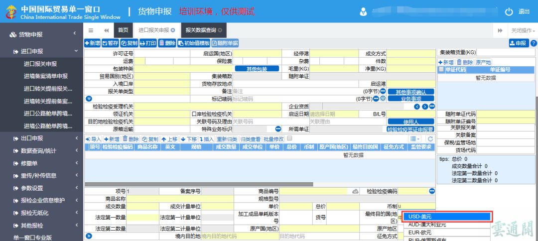 變化二、參數 《國別(地區)代碼表》。 原海關和原檢驗檢疫《國別(地區)代碼表》均由3位數字構成,修訂后的代碼由3位英文字母構成。例如:原海關《國別(地區)代碼表》中美國代碼為“502”,原檢驗檢疫《國別(地區)代碼表》中美國代碼為“840”,修訂后《國別(地區)代碼表》中美國代碼為“USA”。 《港口代碼表》 原海關《港口代碼表》由4位數字構成,原檢驗檢疫《港口代碼表》由6位數字構成,修訂后的代碼由3位英文字母和3位數字構成。例如:原報關《港口代碼表》中緬甸仰光的代碼為“0106”,原報檢《港口代碼表》中緬甸仰光的代碼為“104018”,修訂后緬甸仰光的代碼為“MMR018”。 《貨幣代碼表》 原海關《貨幣代碼表》和原檢驗檢疫《貨幣代碼表》采用3位數字,新修訂的《貨幣代碼表》采用3位國標字母碼。例如:原海關《貨幣代碼表》中美元的代碼為“502”,檢驗檢疫《貨幣代碼表》“840”,修訂后美元的代碼為“USD” 《運輸方式代碼表》 沿用原海關《運輸方式代碼表》,新增運輸方式:進出境旅客隨身攜帶的貨物,填報“旅客攜帶”(代碼L)和以固定設施(包括輸油、輸水管道和輸電網等)運輸貨物的,填報“固定設施運輸”(代碼G) 《包裝種類代碼表》 原海關《包裝種類代碼表》為1位數字,原檢驗檢疫《包裝種類代碼表》為2-4位字符,現行《包裝種類代碼表》采用2位數字代碼。例如:原海關《包裝種類代碼表》中紙箱的代碼為“2”,原檢驗檢疫《包裝種類代碼表》中紙箱的代碼為“4M”,修訂后紙箱的代碼為“22” 《集裝箱規格代碼表》 原海關《集裝箱規格代碼表》為1位英文,原檢驗檢疫《集裝箱規格代碼表》為3位數字,現行《集裝箱規格代碼表》采用2位數字代碼。 |